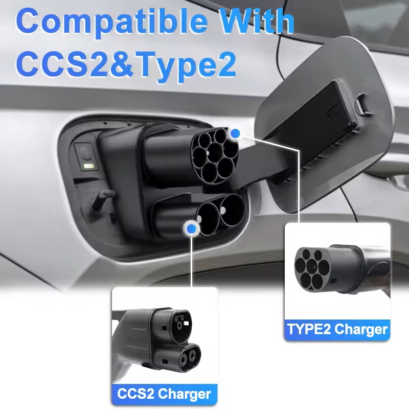 Адаптеро підтримує протоколи як швидкого заряджання CCS2 (DC), так і повільного заряджання Type 2 (AC).