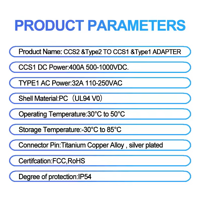 Характеристики адаптера-перехідника для заряджання електромобілів CCS2 – CCS1 (AC+DC):