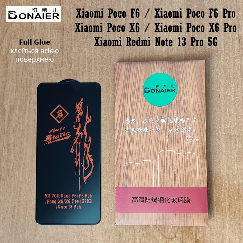 Захисне скло Bonaier (3D Full Glue) для Xiaomi Redmi Note 13 Pro 5G / Xiaomi Poco X6 / Xiaomi Poco X6 Pro / Xiaomi Poco F6 / Xiaomi Poco F6 Pro / Xiaomi Redmi K70 / Xiaomi Redmi K70 Pro / Xiaomi Redmi Turbo 3